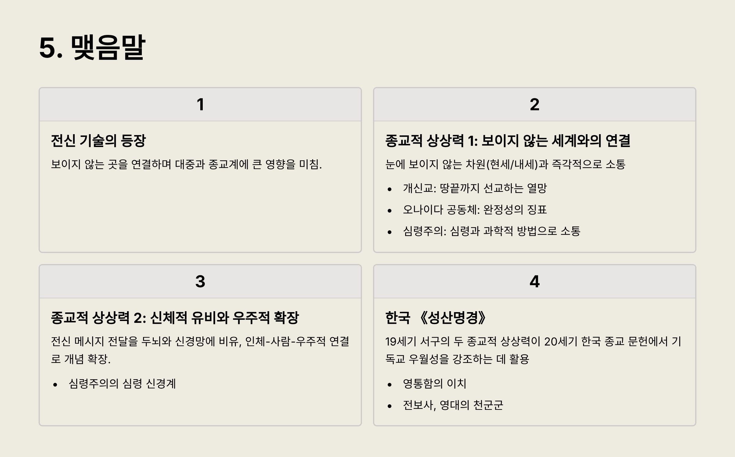 책&배움/돌아다니다가 [발표] 전신의 발명과 19세기의 종교적 상상력 by 방가房家 2025. 11. 24. “전신의 발명과 19세기의 종교적 상상력”2025년 11월 15일 발표 내용 반응형 공유하기 게시글 관리 종교학 벌레 저작자표시 (새창열림) 관련글 [발표] 조너선 스미스 소개하기 [발표] 1950년대 한국 크리스마스 연구 허 본좌와의 만남 고대 한국 기독교 유물